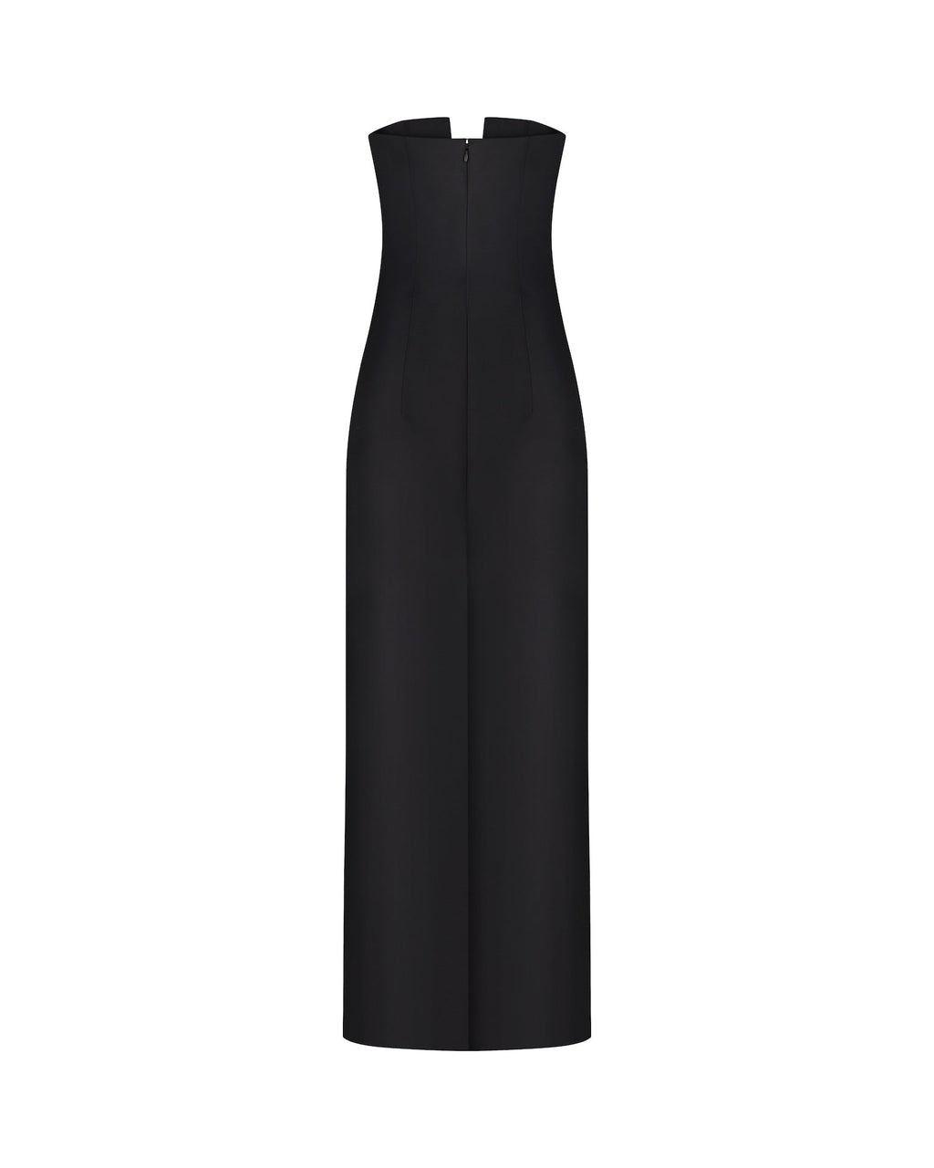 Plunge Neckline Bow-Detailed Maxi Dress features a sleek silhouette detailed with a sparkly bow accent along the bodice and a skin-baring plunge necklineĀ